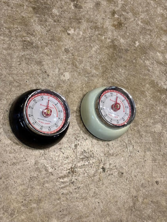アナログの良さを大いに味わうことが出来るゼンマイ式のタイマーです。 細かい秒数の設定は出来ませんが、見た目が可愛い!! またジリリリというタイマー音がスチールならではの心地よい重みが感じられます。 マグネットがついているので冷蔵庫やレンジフードなどにくっつけることが出来ます。