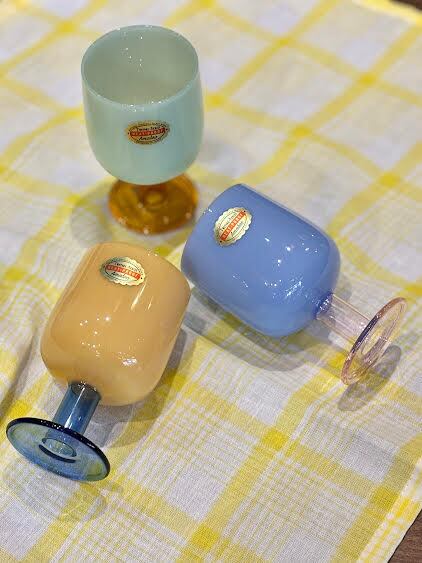 ミルクガラスと透明グラスを組み合わせたバイカラーが可愛い脚付きのグラスです。