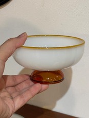 ミルクガラスに透明ガラスのフチと高台を組み合わせたデザートボウル。アイスクリームにゼリーやプリンなどのデザート、そしてフルーツのデザートなどの器をしてご使用いただけます。