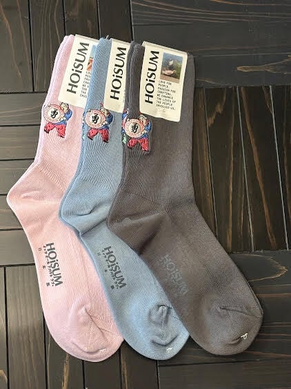香港童子「保」「勇」を抱えた“ほいさむ”刺繍ソックスです。