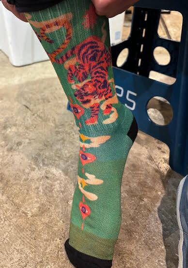 鮮やかなグリーンをベースに奈良醸造特製のコラボレーションビール『Love&Tiger』のラベルデザインを忠実に表現したお洒落な靴下です。
